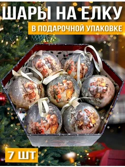 Новогодние шары на елку большие 8 см набор 7 штук в коробке
