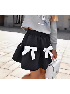 Юбка школьная на резинке с бантиками