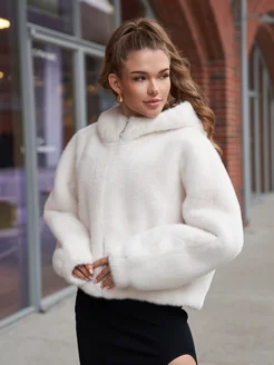 Шуба искусственная короткая с капюшоном экомех на молнии
