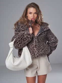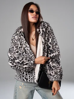 Шуба искусственная экошуба леопардовая