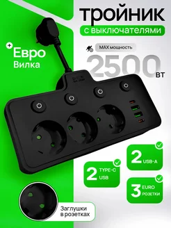 Удлинитель сетевой фильтр 2 метра 3 розетки с USB