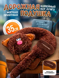 Подушка для шеи кот дорожная игрушка для путешествий 35 см