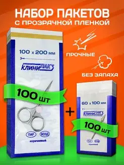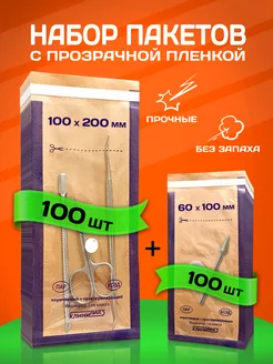 Крафт пакеты для стерилизации прозрачные 100*200 мм 200 шт
