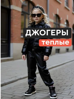 Теплые штаны под экокожу джогеры