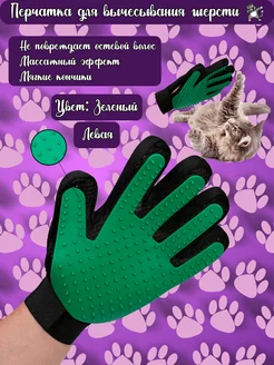 Перчатка левая для вычесывания шерсти кошек и собак зеленая