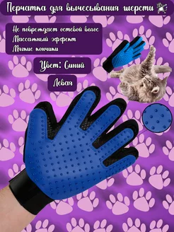 Перчатка левая для вычесывания шерсти кошек и собак синяя
