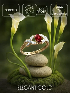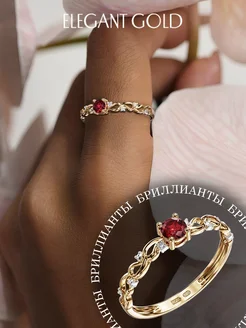 Кольцо золотое 585 с Бриллиантами и Рубином