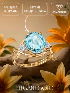 Кольцо православное золотое 585 с Матроной и Бриллиантом