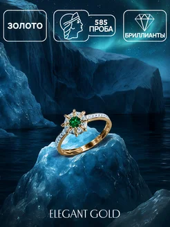 Кольцо золотое 585 с Бриллиантами и Изумрудом