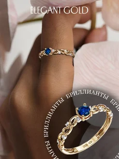 Кольцо золотое 585 с Бриллиантами и Сапфиром