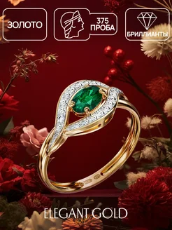 Кольцо золотое 375 с Бриллиантами и Изумрудом