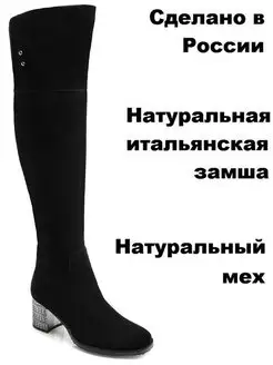 Ботфорты женские замшевые и кожаные зимние с мехом, Россия