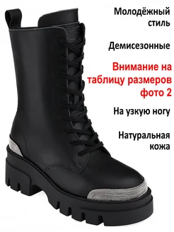 Ботинки высокие женские берцы осенние кожа на узкую ногу