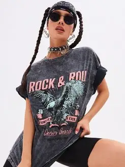Футболка y2k варенка оверсайз с принтом удлиненная рок орел