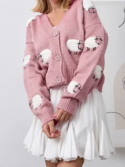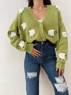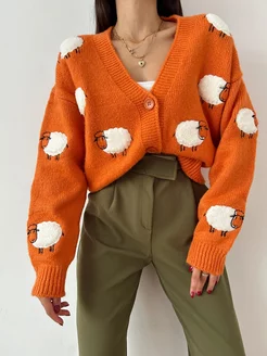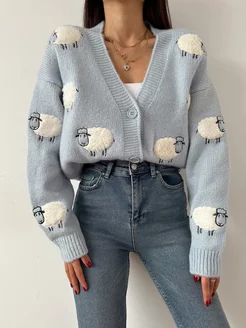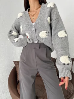 Кофта теплая вязаная на пуговицах оверсайз укороченная