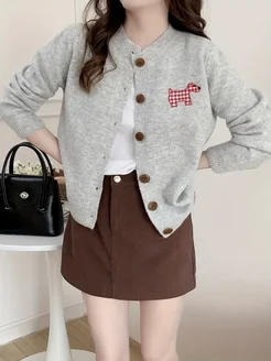 Кофта на пуговицах теплая вязаная короткая в школу осенняя