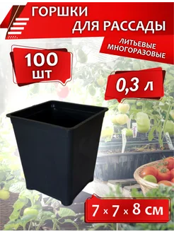 Горшки для рассады 0,3 л 100 шт квадратные