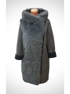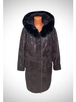 Пальто зимнее длинное на верблюжьей шерсти эко норка