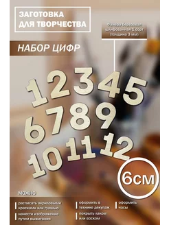 Деревянные цифры набор от 1 до 12 для творчества "цифры 6см"