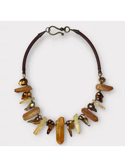 Бусы "Коричневый жемчуг и Горный хрусталь"