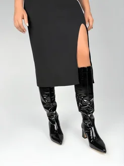 Сапоги демисезонные на каблуке лаковые