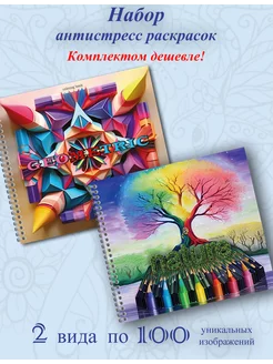 Набор раскрасок антистресс 2 в 1 геометрия и природа