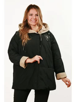 Куртка короткая больших размеров с капюшоном пуховик