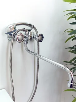Смеситель для ванны с душем однорычажный длинный излив