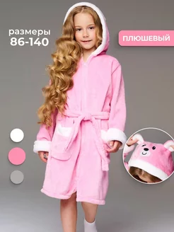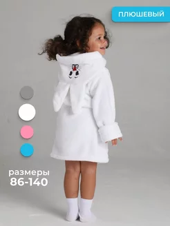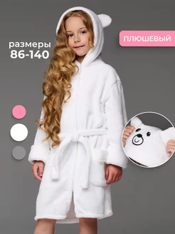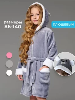 Халат домашний плюшевый с капюшоном и поясом на молнии