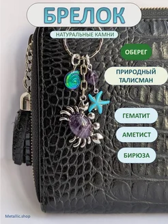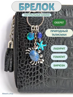 Брелок Крабик для ключей и на сумку. Натуральные камни