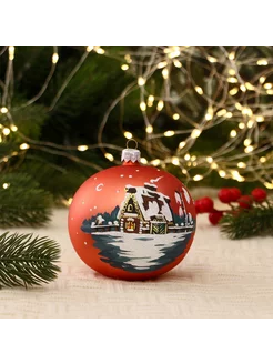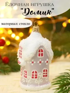 Елочная игрушка, шар новогодний Домик 9,5 см