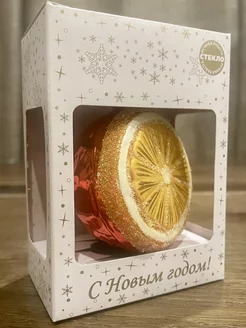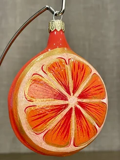 Елочная игрушка из стекла "Апельсин медальон" 9 см
