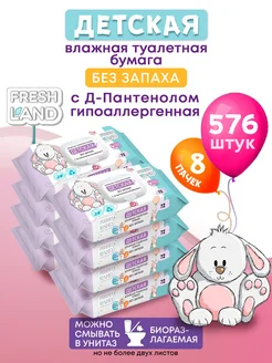 Влажная детская туалетная бумага Зайка 8х72 шт с клапаном