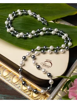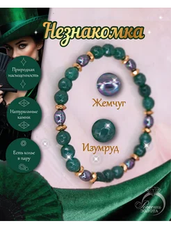 Браслет из натуральных камней Изумруд и Черный Жемчуг