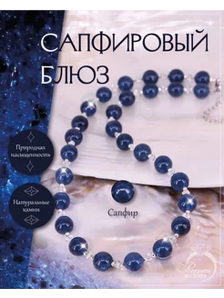 Колье бусы из натурального Сапфира и Горного Хрусталя