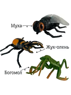 Набор из 3 фигурок насекомых "Муха, жук и богомол"