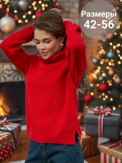 Свитер теплый кашемировый вязаный оверсайз с горлом