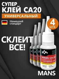 Супер клей CA-20 универсальный прозрачный, 4 штуки