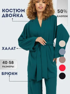Пижама с кимоно и штанами из хлопка и вискозы