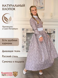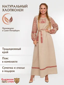 Платье-рубаха Славянское бежевое в русском народном стиле