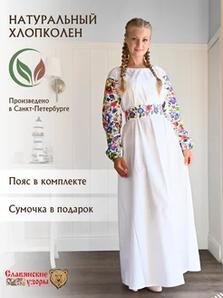 Платье славянское белое льняное в русском стиле