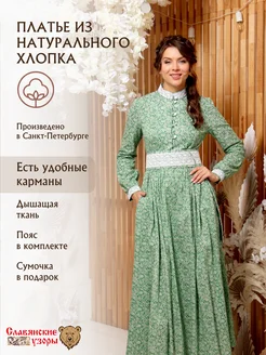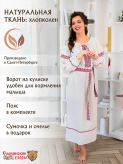 Платье в русском народном стиле славянское белое макси лён