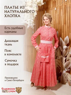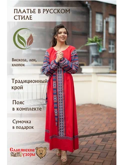 Платье в русском народном стиле славянское красное макси лён