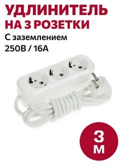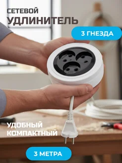 Электрический удлинитель рулетка сетевой, 3 м, 3 гнезда
