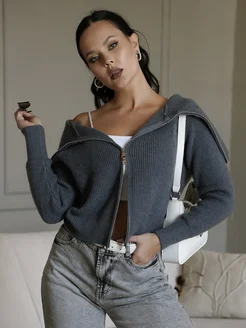 Свитер оверсайз на молнии полузамок укороченный