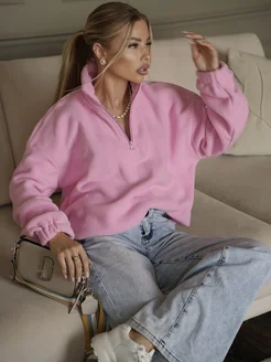 Кофта толстовка теплая оверсайз полузамок флисовая