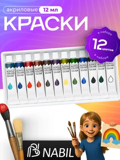 Краски акриловые набор 12 цветов в тюбиках по 12 мл