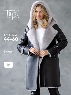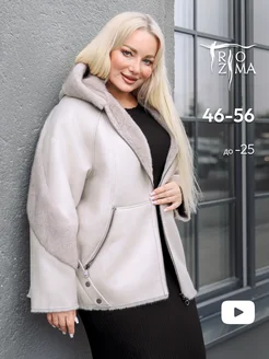 Дубленка зимняя больших размеров с капюшоном двухсторонняя