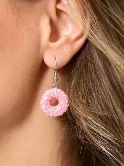 Серьги яркие длинные подвески пончики