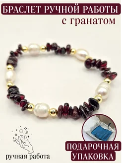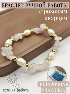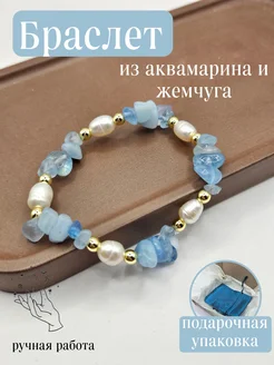 Браслет из натуральных камней, из аквамарина и жемчуга